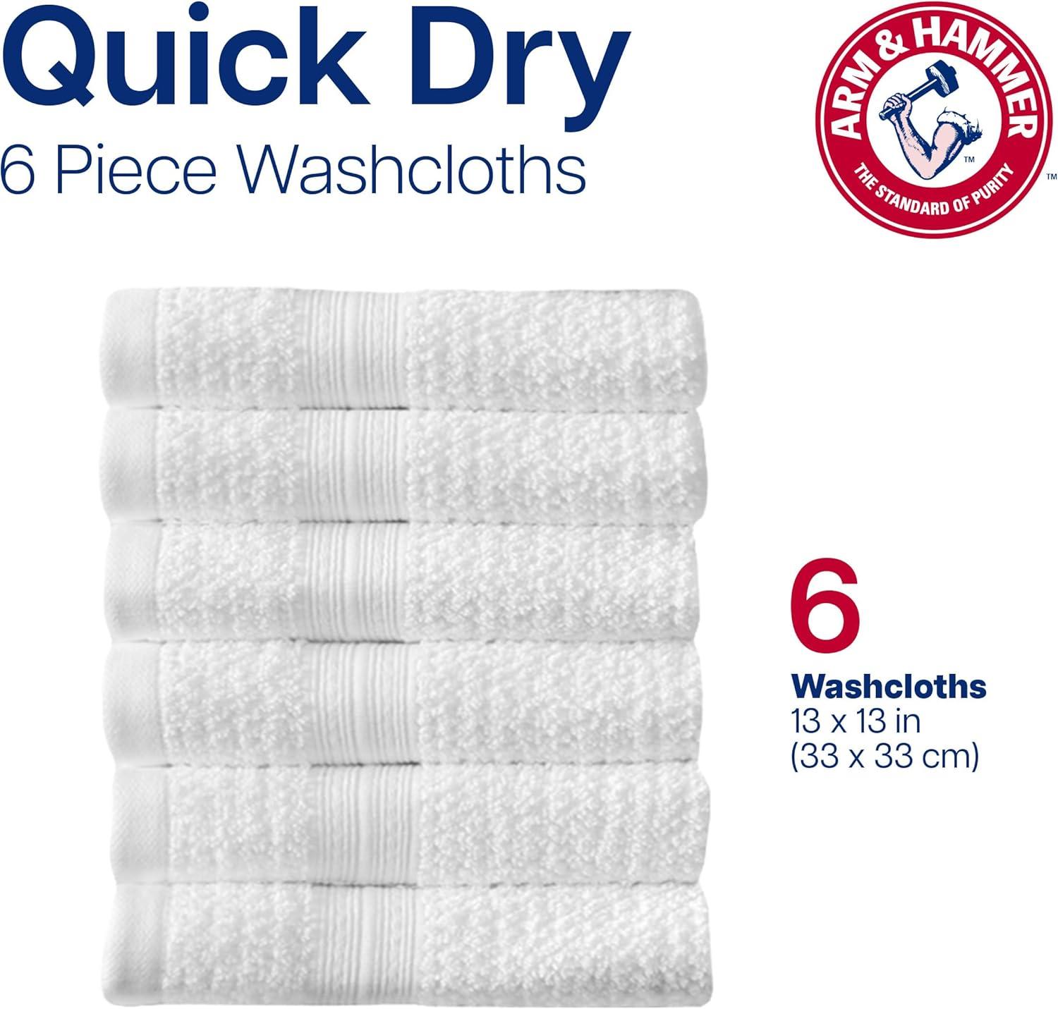 Arm & Hammer Quick Dry Washcloth Set, 6 Piece, Light Blue(White)