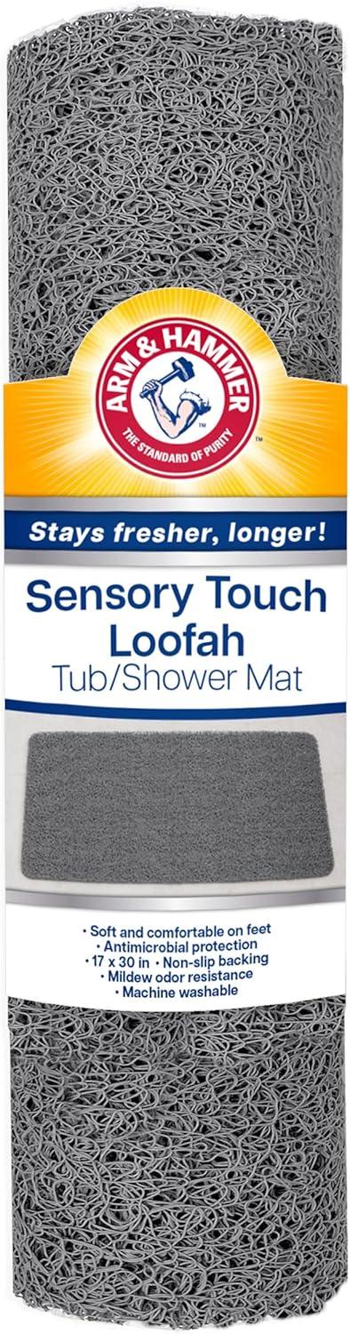 Arm & Hammer Sensory Touch Non-Slip Loofah Bath Mat for Showers and Tubs, 17 x 30, Grey(Grey)
