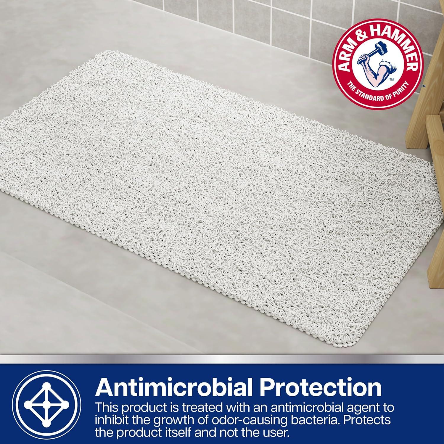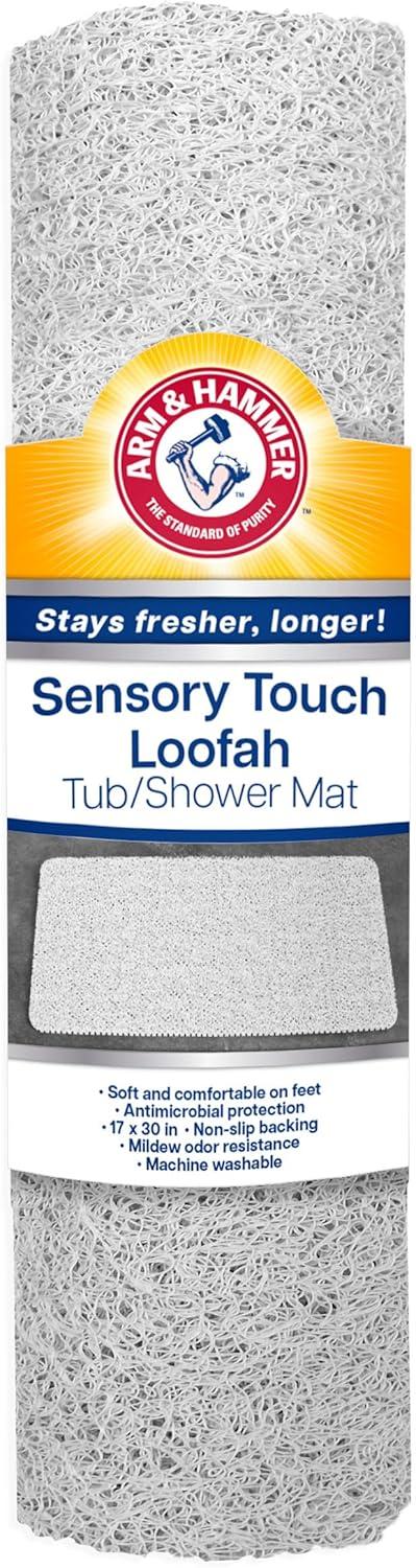 Arm & Hammer Sensory Touch Non-Slip Loofah Bath Mat for Showers and Tubs, 17 x 30, Grey(White)