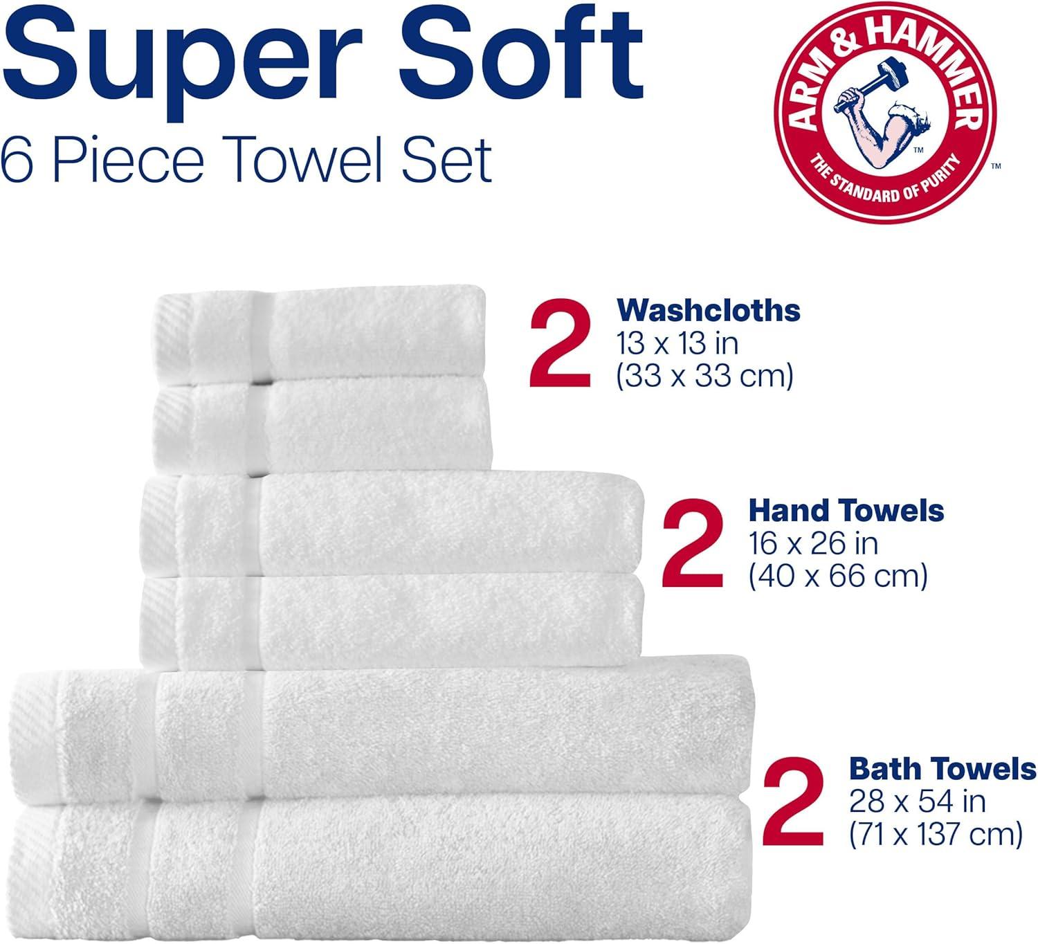 Arm & Hammer Super Soft Bath Towel Set, 6 Piece, Khaki(White)