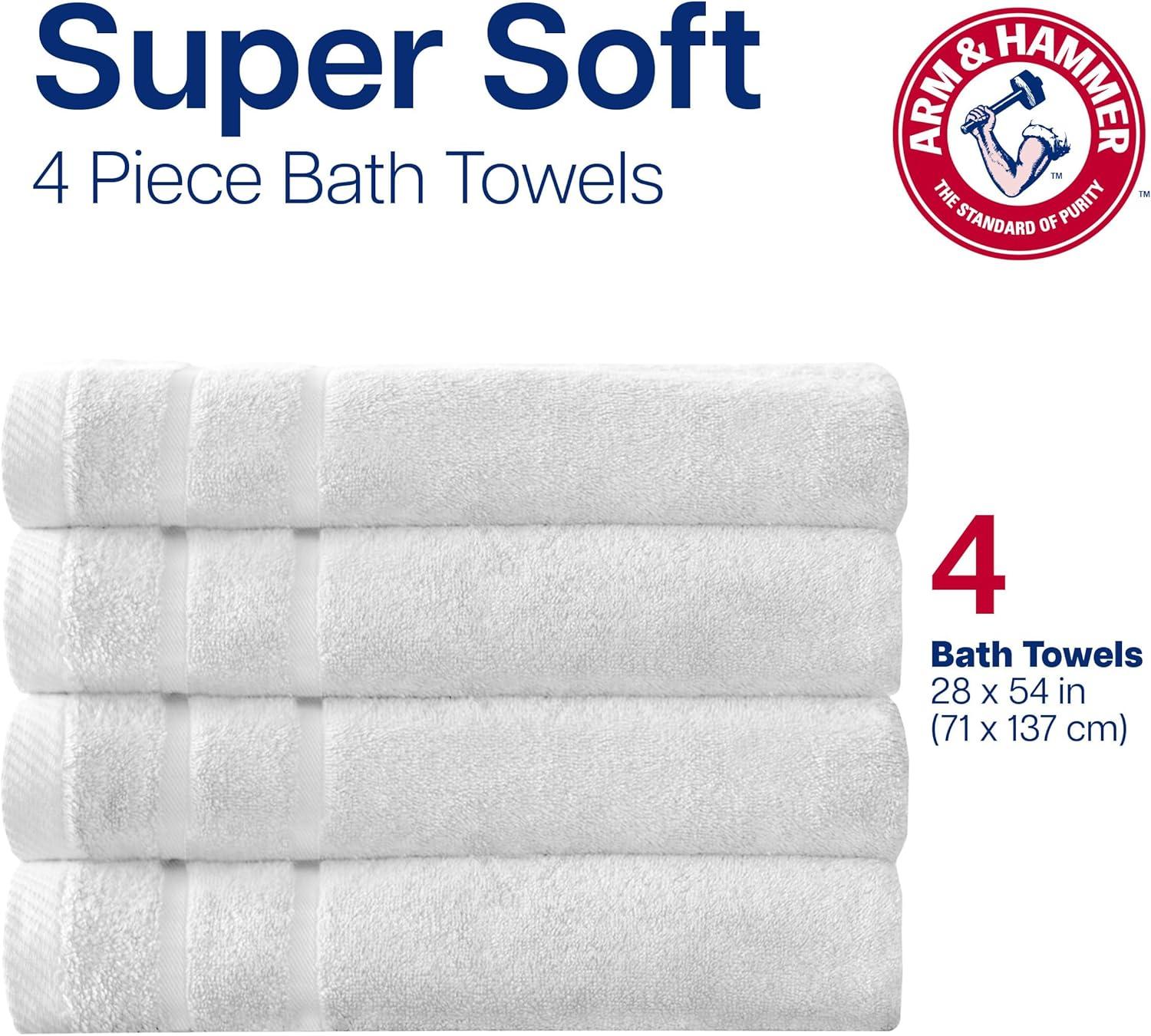 Arm & Hammer Super Soft Bath Towels, 4 Piece, Dark Blue(White)