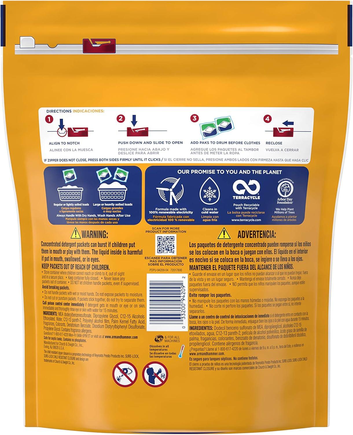 ARM & HAMMER™ Deep Clean Odor Formula Laundry Detergent Power Paks, Laundry Odor Remover, Radiant Burst Scent, 44 Count, 44 Loads(21 Count (Pack of 1))