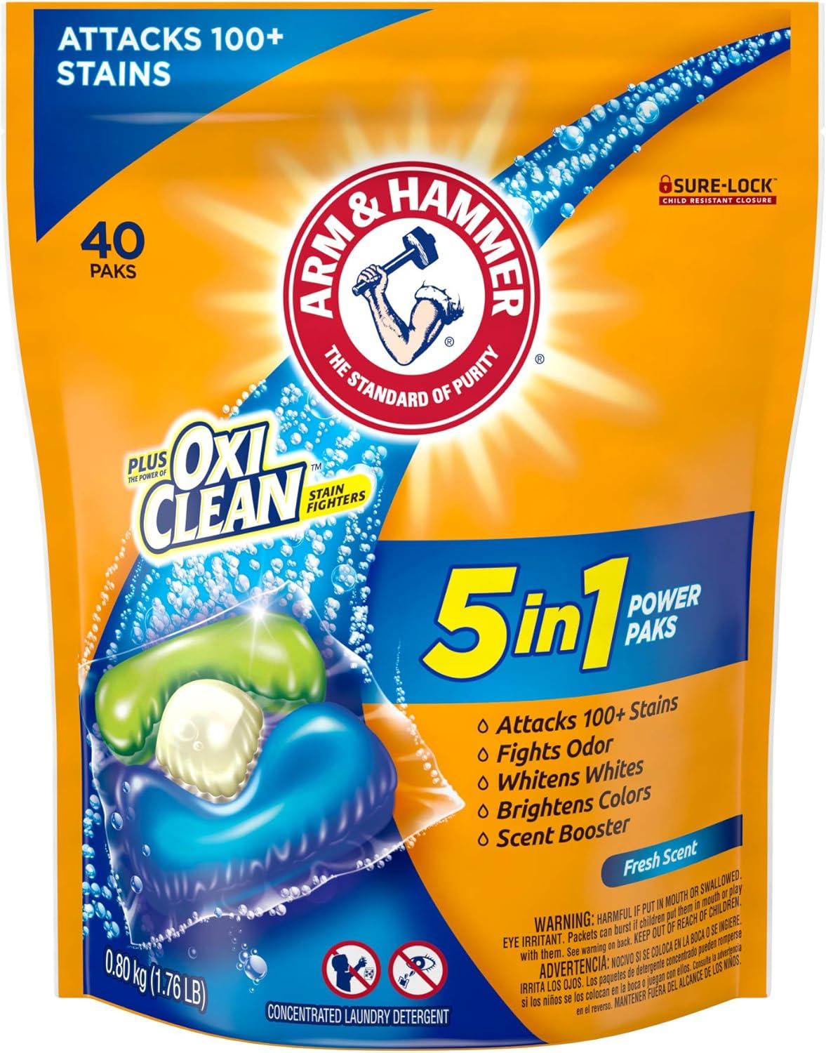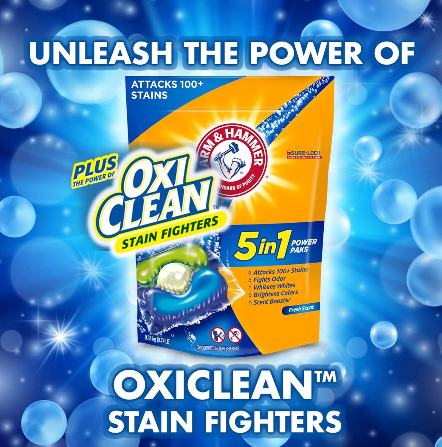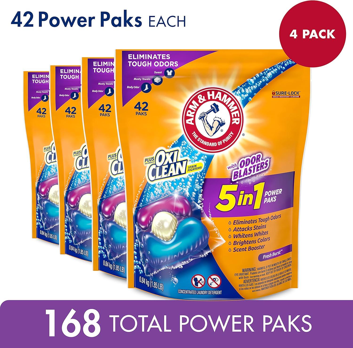 Arm & Hammer Plus OxiClean 5-in-1 Laundry Detergent Power Paks, 42 Count (Packaging may vary)(Fresh Scent)