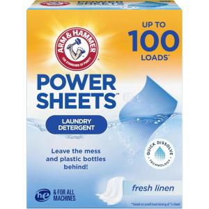 Arm & Hammer Power Sheets Laundry Detergent, Fresh Linen 50ct, up to 100 Small Loads (Packaging may vary)(Sheets- Laundry Detergent)