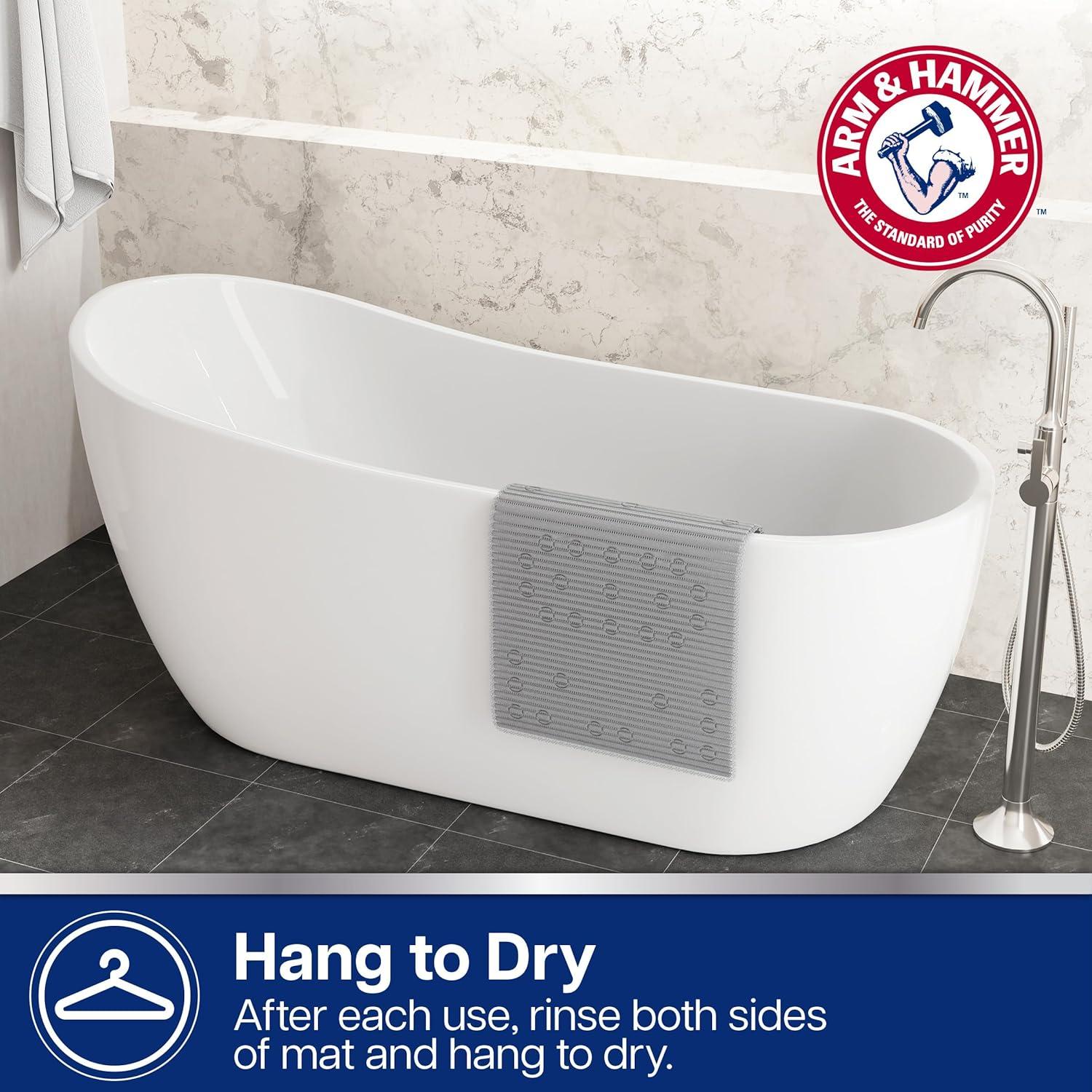 Step into your tub or shower and experience the benefits of our ultimate Performance Foam XL Shower Mat. Its slip-resistant design ensures stability and safety. Enjoy supreme comfort with soft, cushioning foam that provides gentle support. This durable mat is made from premium material and is machine washable for easy care. Antimicrobial product protection keeps mold and mildew away, so it stays fresher, longer. Resistant to mildew odors, it helps keep your bathroom clean and fresh. This extra-long 17 x 40-inch mat offers ample coverage for larger showers and tubs. For generations, ARM & HAMMER has been a trusted choice for simple solutions and everyday wins. ARM & HAMMER continues to be a beloved brand offering innovative and dependable products for every room in your home. This item is manufactured, marketed and distributed by Levinsohn Textile Co., Inc. The ARM & HAMMER trademarks are owned by Church & Dwight Co., Inc., and are used by Levinsohn Textile under license.