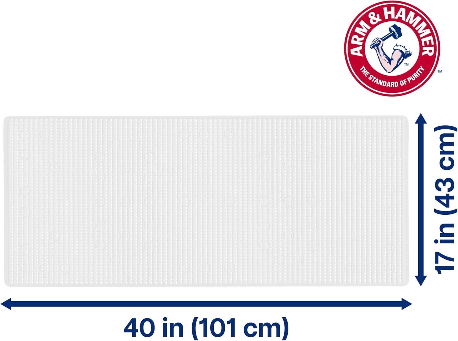 Step into your tub or shower and experience the benefits of our ultimate Performance Foam XL Shower Mat. Its slip-resistant design ensures stability and safety. Enjoy supreme comfort with soft, cushioning foam that provides gentle support. This durable mat is made from premium material and is machine washable for easy care. Antimicrobial product protection keeps mold and mildew away, so it stays fresher, longer. Resistant to mildew odors, it helps keep your bathroom clean and fresh. This extra-long 17 x 40-inch mat offers ample coverage for larger showers and tubs. For generations, ARM & HAMMER has been a trusted choice for simple solutions and everyday wins. ARM & HAMMER continues to be a beloved brand offering innovative and dependable products for every room in your home. This item is manufactured, marketed and distributed by Levinsohn Textile Co., Inc. The ARM & HAMMER trademarks are owned by Church & Dwight Co., Inc., and are used by Levinsohn Textile under license.