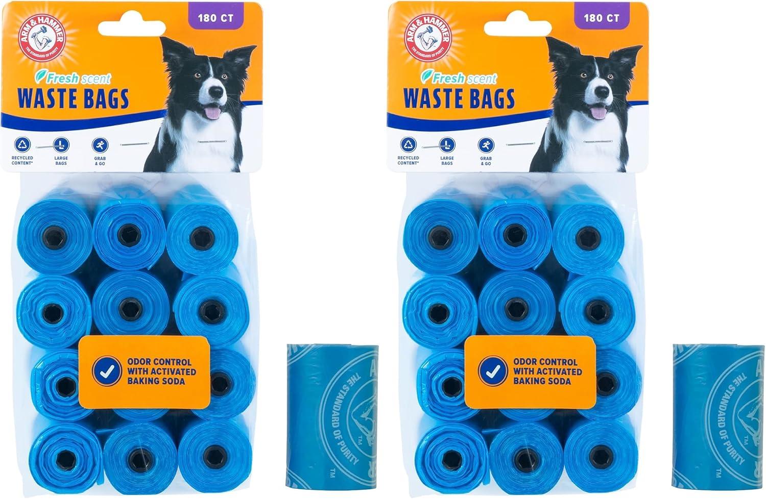 Arm & Hammer Durable Disposable Dog And Cat Waste Bags With Activated Baking Soda, 180 Dog Poop Bags, 9 x 14 Inches, Blue(Blue)