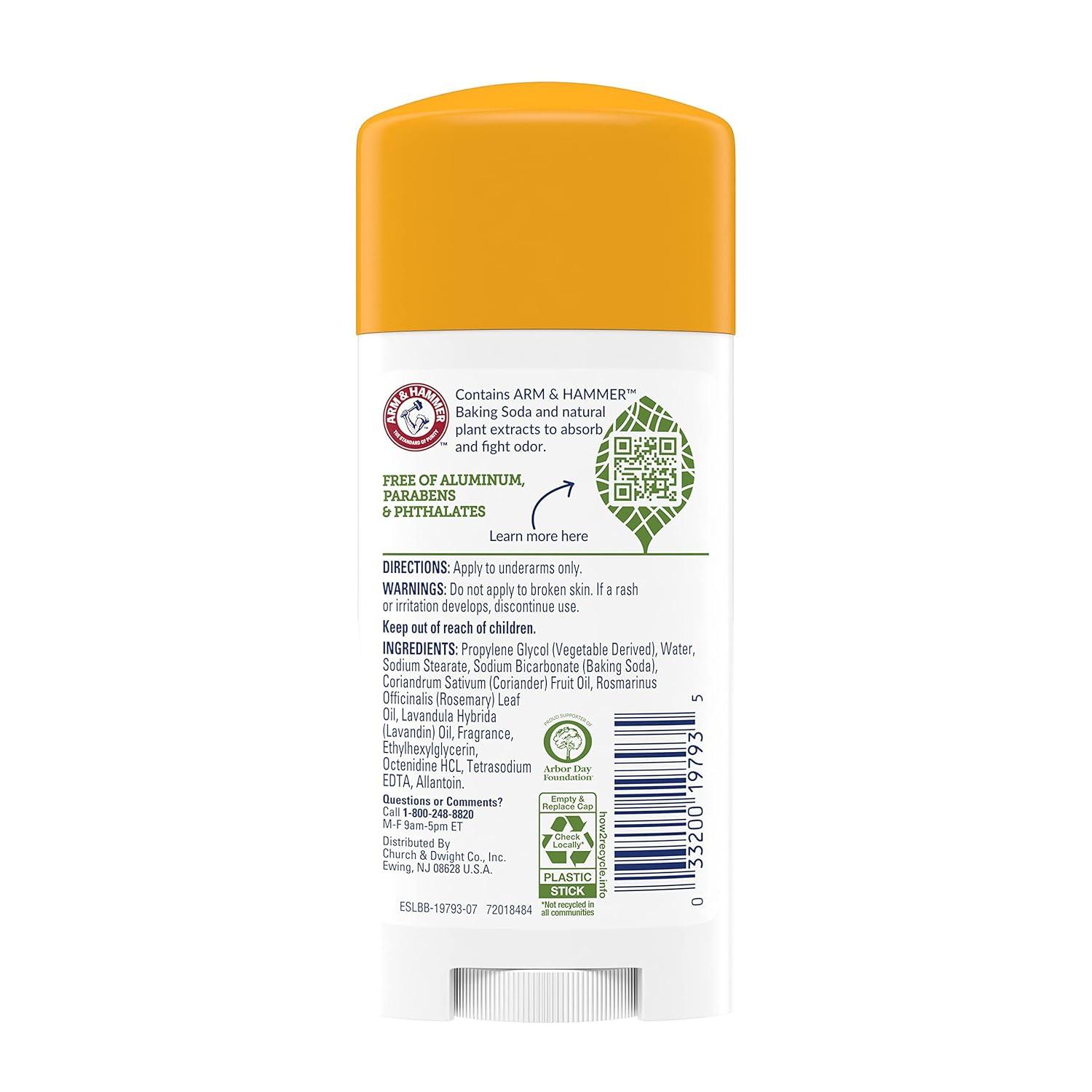 ARM & HAMMER Essentials Deodorant- Clean Juniper Berry- Wide Stick- Made with Natural Deodorizers- Free From Aluminum, Parabens & Phthalates, 2.5 oz (Pack of 2)(Rosemary Lavender)