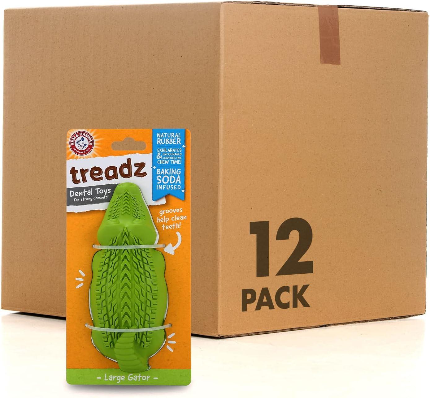 Arm & Hammer for Pets Super Treadz Gator Chew Toy – Best Chew Toys Reduce Plaque & Tartar Buildup Without Brushing – for Dogs up to 35 Lbs (Pack of 12)(Gator)