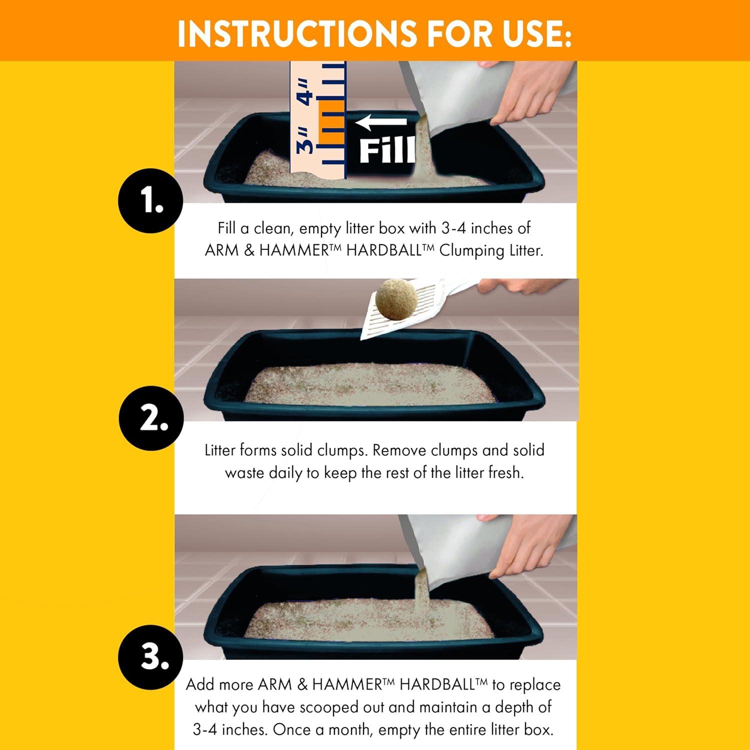 ARM & HAMMER HardBall Lightweight Cat Litter is an innovative product designed for efficient waste management and routine litter maintenance. As a premium ARM & HAMMER cat litter, it delivers odor control while remaining lightweight. ARM & HAMMER HardBall features ultracompact clumps, perfect for spill-free scooping and odorous waste reduction, offering easy,virtually dust free cat litter clumping for a fresh kitty litter box. Suitable for multi cat litter households, this ARM & HAMMER HardBall cat litter forms hard, tight clumps that simplify clean-up. Crafted with a delightful Garden Bloom scent, it keeps your home smelling fresh for up to 14 days. Our light weight cat litter clumping option is over 60% lighter than traditional versions, transforming litter maintenance into an effortless task. Designed with high performance odor elimination and ultra-absorbency, this clumping litter ensures a clean, pleasant environment. ARM & HAMMER HardBall cat litter is compatible with scoop tools and litter accessories, making it ideal for residential indoor pet areas used by cat lovers, pet guardians, and responsible pet owners. Easily used on litter box interiors and pet hygiene areas, ARM & HAMMER's easy-to-pour formula is tailored for the dedicated, multi-cat household.