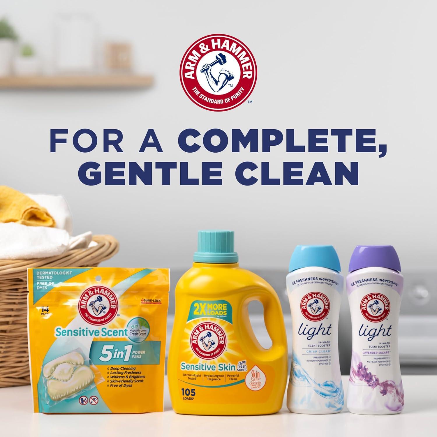 Use ARM HAMMER light laundry scent boosters with ARM HAMMER laundry detergent liquid or Power Paks to power out dirt and odors, and give your entire laundry routine a complete clean and a lasting light freshness