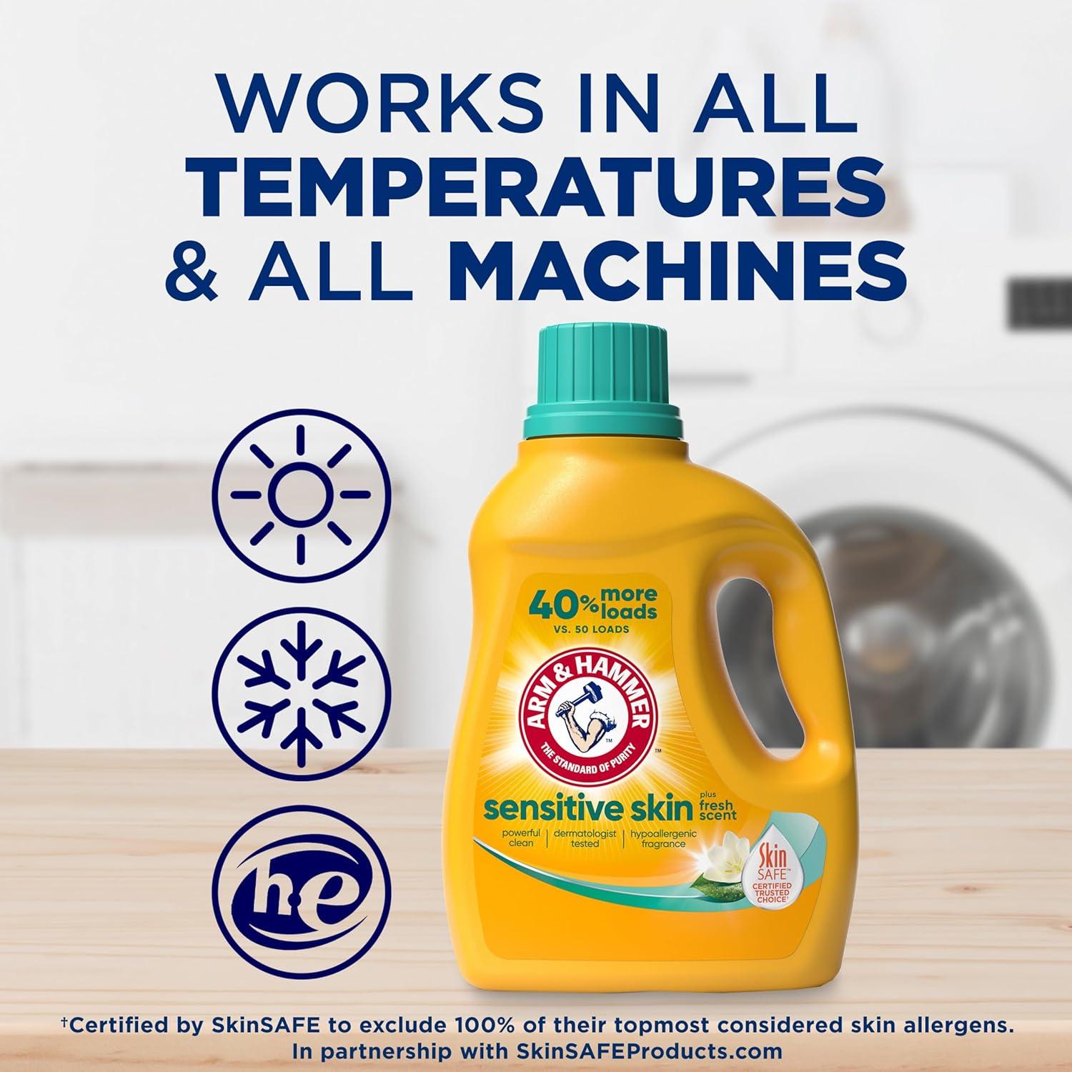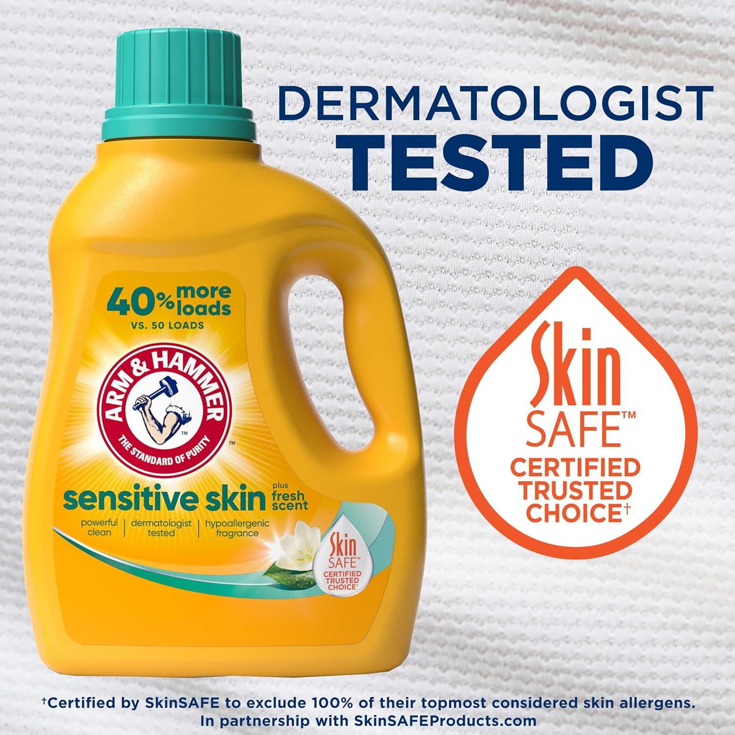 ARM & HAMMER Sensitive Skin Liquid Laundry Detergent, Fresh Scent, 105 fl oz, 105 Loads(105 Fl Oz (Pack of 1))