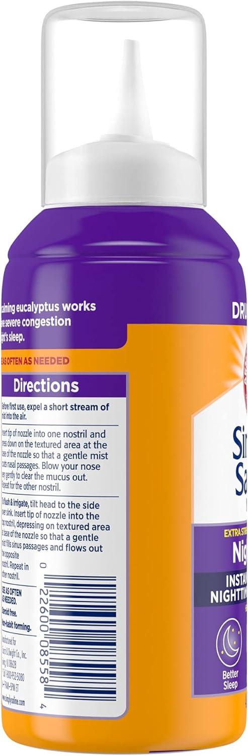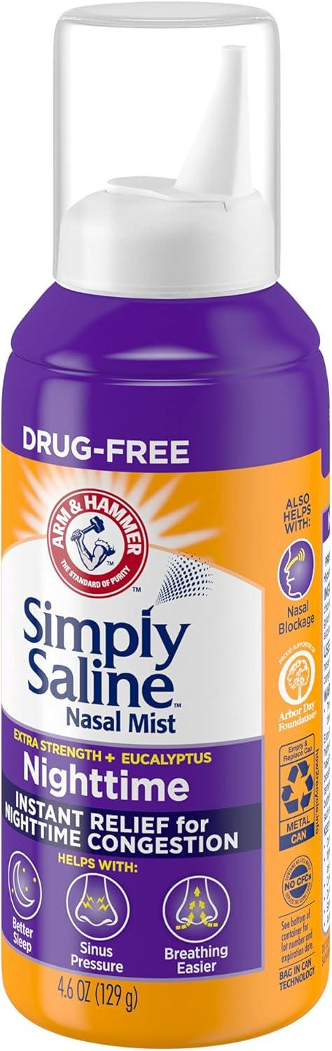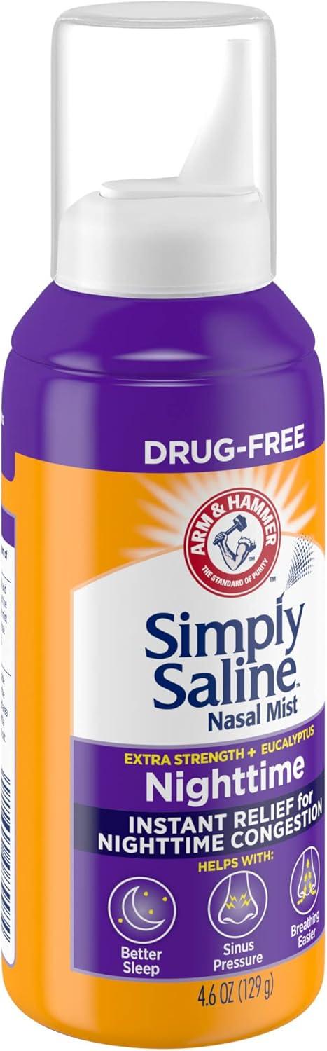 ARM & HAMMER Simply Saline Nighttime Drug-Free Mist for Nasal Congestion at Night, Extra Strength, Calming Eucalyptus, Safe to Use with Rx and OTC, For Adults and Kids Ages 2+, 4.6 oz (129 g)(Nasal Mist)