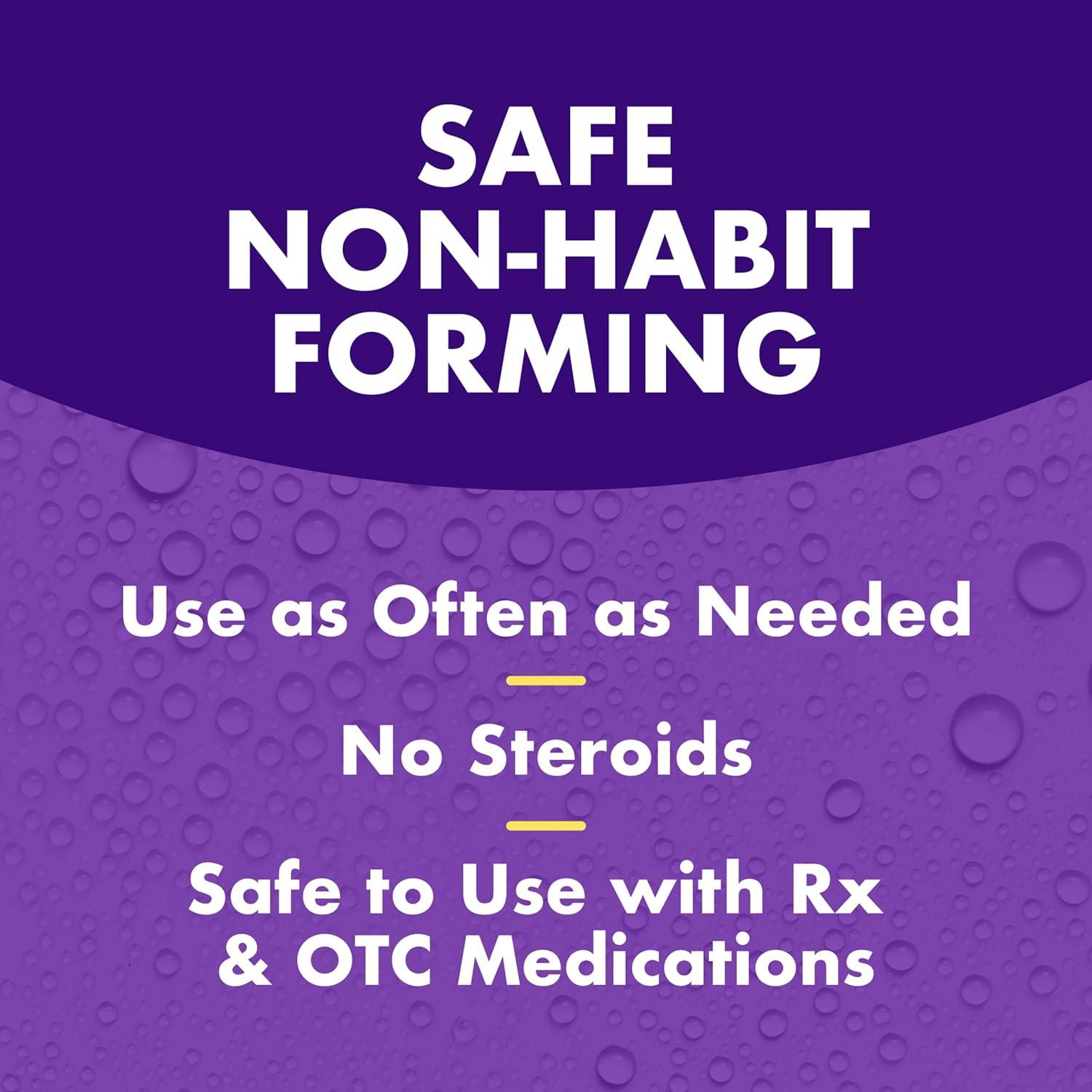This extra-strength nasal spray is drug-free, steroid-free, non-habit forming, and safe to use day and night, with prescription and OTC medications