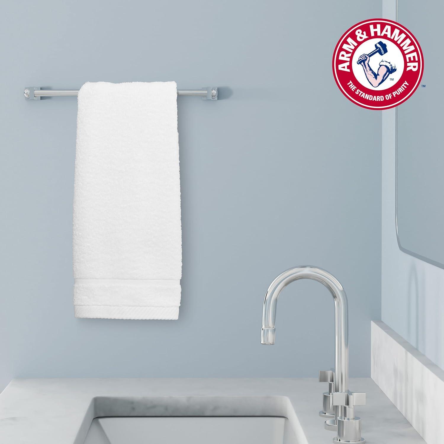 Experience the gentle luxury of the Arm & Hammer Super Soft towels designed for those with sensitive skin. Crafted from a unique blend of soft cotton and rayon from bamboo, these advanced towels offer enduring softness without harmful irritants. Lower-lint and machine washable, they maintain their pristine appearance. With antimicrobial protection, these towels are sure to stay fresher for longer.  This set includes two hand towels measuring 16″ x 26″.