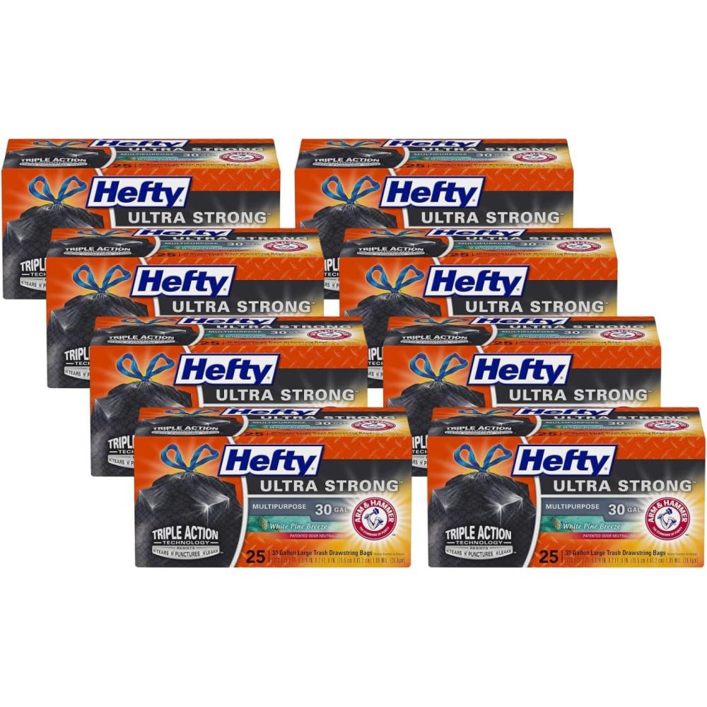 Hefty Ultra Strong 30 Gallon Trash Bags, Large Trash Bags 30 Gallon Size, Multipurpose, Break Resistant Drawstring Closure, Resists Leaks, Punctures, and Tears, Black, White Pine Breeze Scent, 25 Bags(25 Count (Pack of 8))