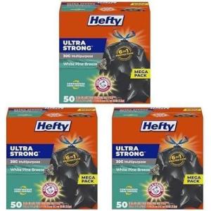 Hefty Ultra Strong 30 Gallon Trash Bags, Large Trash Bags 30 Gallon Size, Multipurpose, Break Resistant Drawstring Closure, Resists Leaks, Punctures, and Tears, Black, White Pine Breeze Scent, 25 Bags(50 Count (Pack of 3))